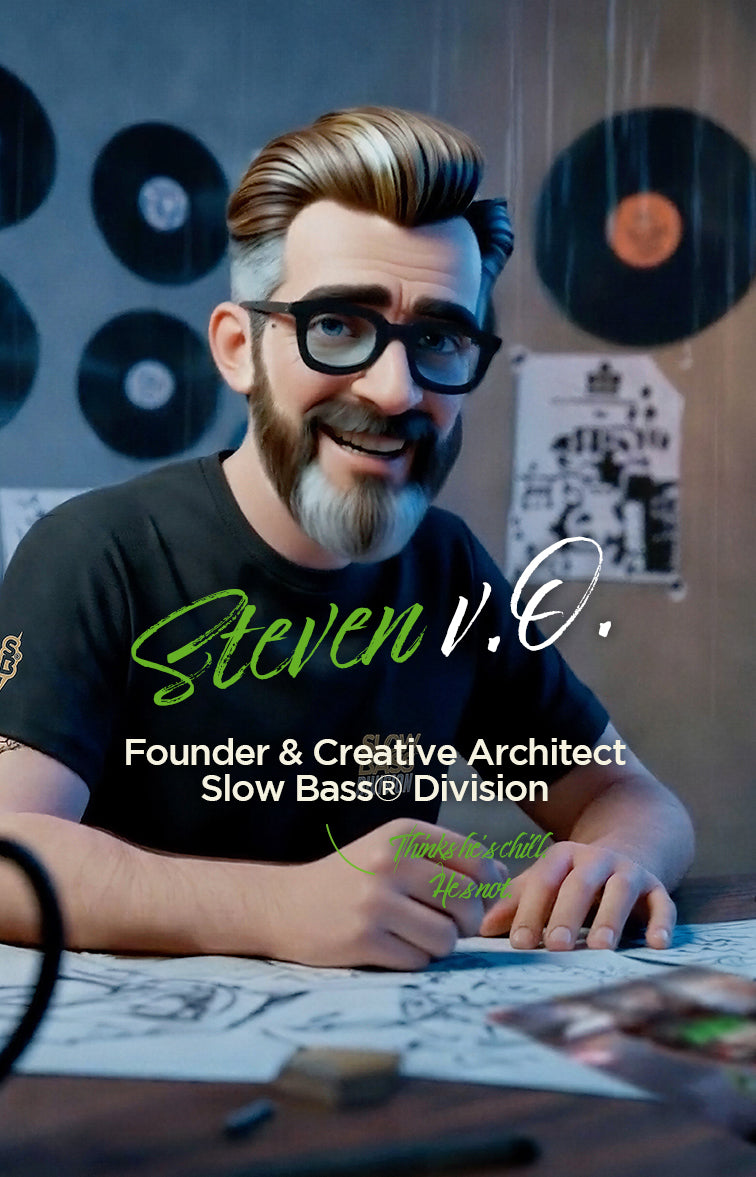 Fondé par un designer belge qui bosse depuis plus de vingt ans pour les grandes marques, Slow Bass® est devenu une respiration personnelle, un exutoire créatif où chaque drop raconte une humeur, un son, une époque.